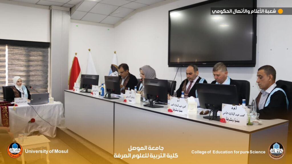 ترأس لجنة المناقشة الأستاذ المساعد الدكتورة رغد نواف جرجيس وعضوية كل من الأستاذ المساعد الدكتورة فوز عبدالسلام خليل والمدرس الدكتورة نوار طلال حامد وبإشراف وعضوية الأستاذ الدكتورة نجوى ابراهيم خليل.