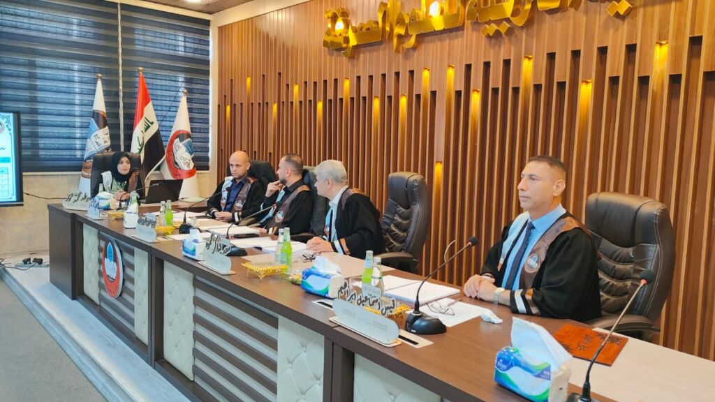 ترأس لجنة المناقشة الاستاذ الدكتور مجبل حماد عواد وعضوية كل من الاستاذ المساعد الدكتور عاصم احمد خليل و الاستاذ المساعد الدكتور حسين عبيد ضحوي وباشراف وعضوية كل من الاستاذ الدكتور عبدالرزاق ياسين عبدالله والاستاذ الدكتور عمار صديق محمود.