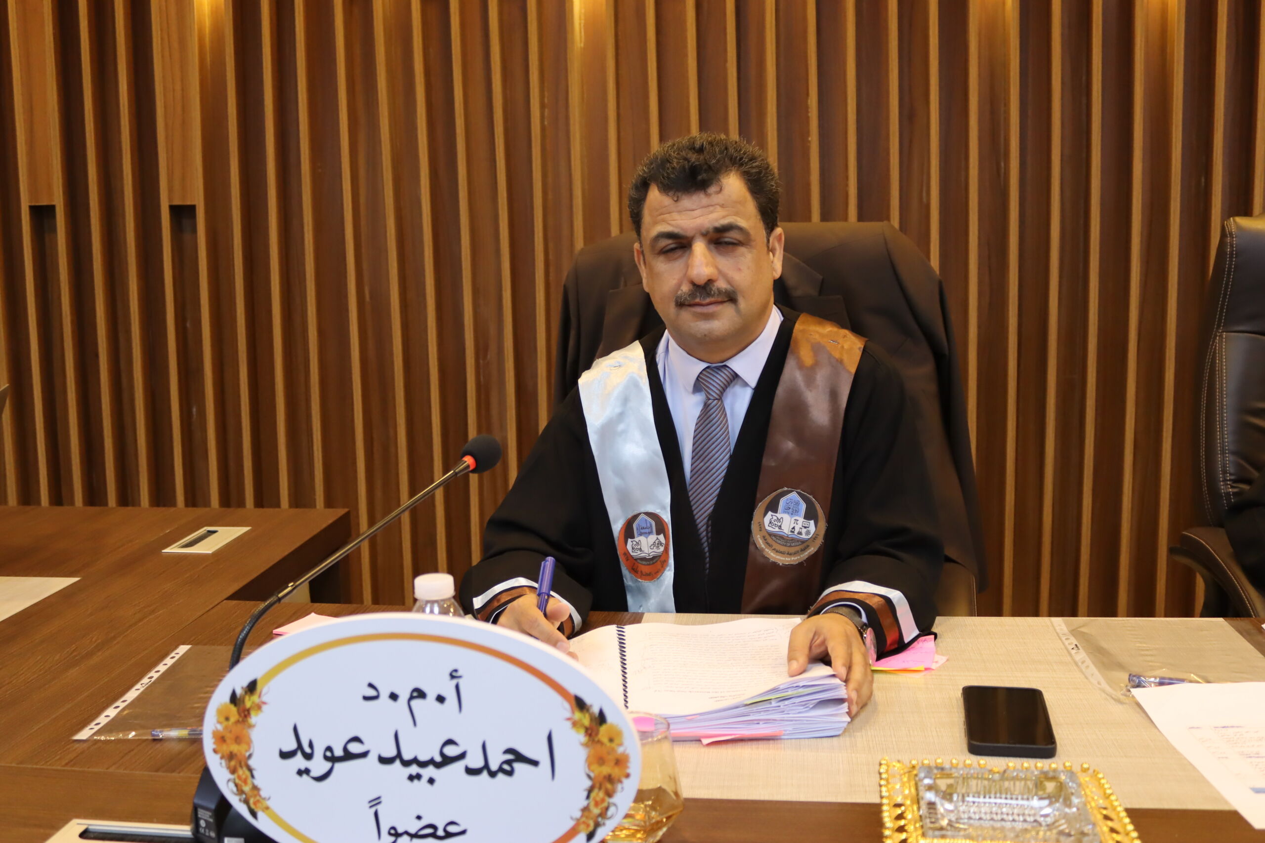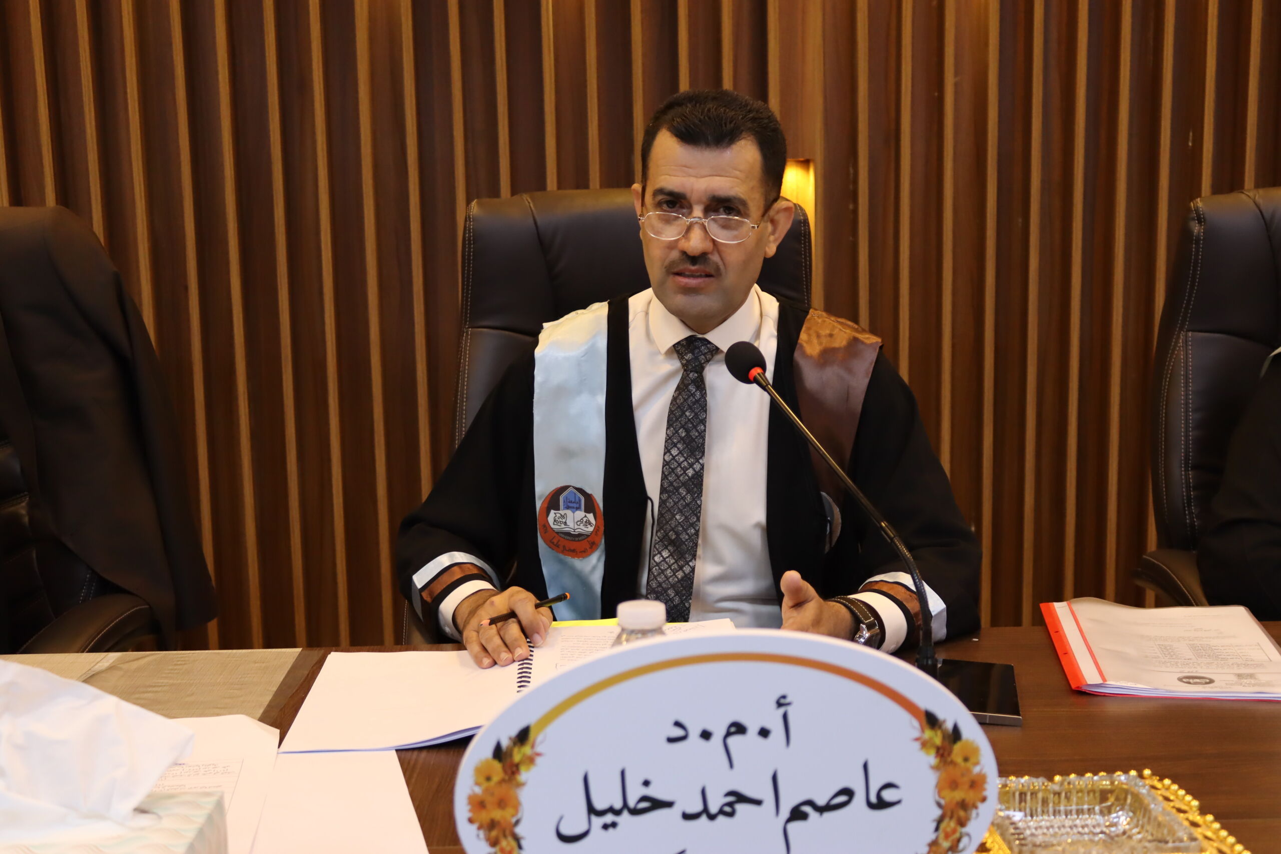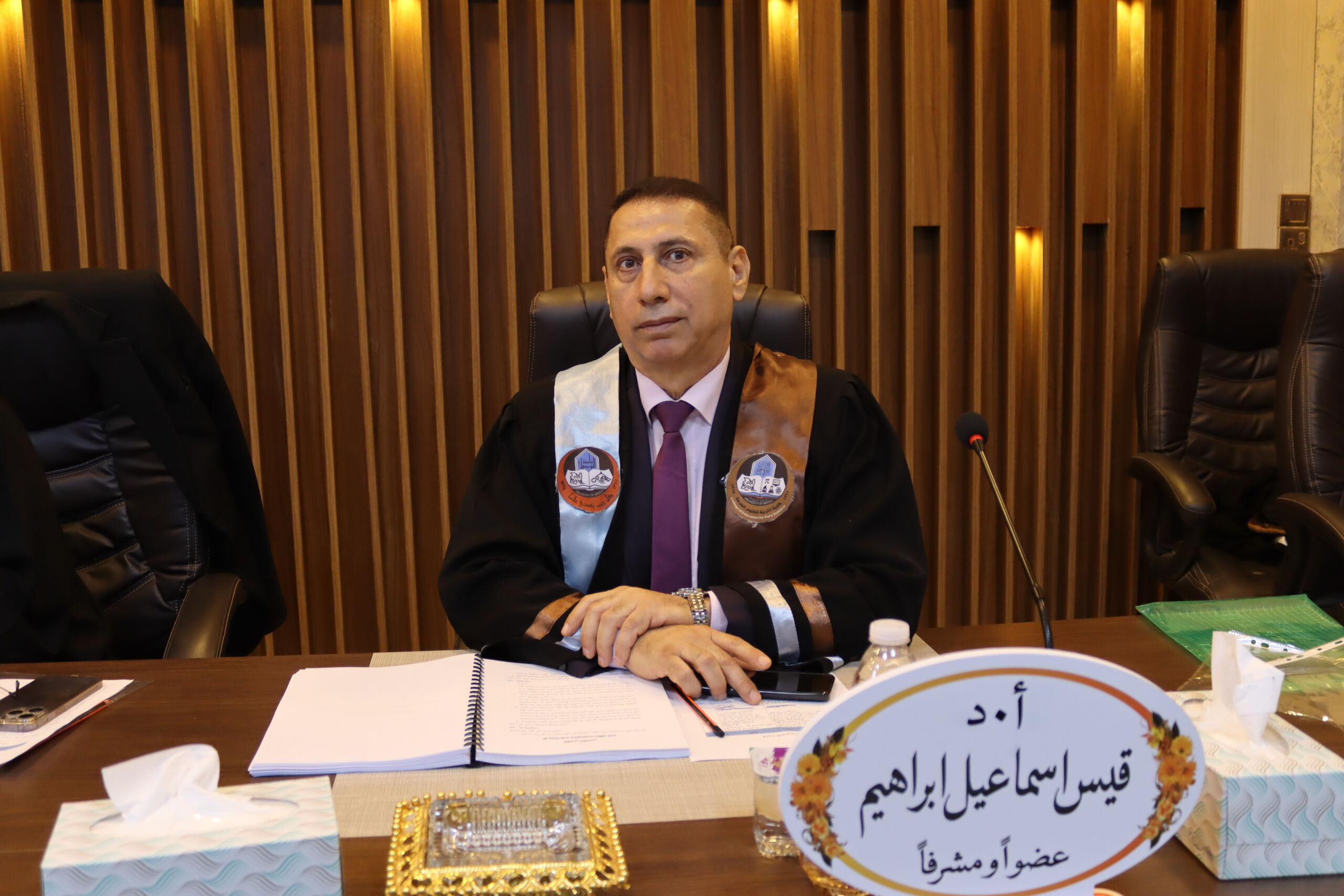 ترأس لجنة المناقشة الأستاذ المساعد الدكتور عاصم احمد خليل وعضوية كل من الأستاذ المساعد الدكتورة ليلى خالد خضير والأستاذ المساعد الدكتور احمد عبيد عويد وبإشراف وعضوية الأستاذ المساعد الدكتور حسين عبيد ضحوي والأستاذ الدكتور قيس اسماعيل ابراهيم.