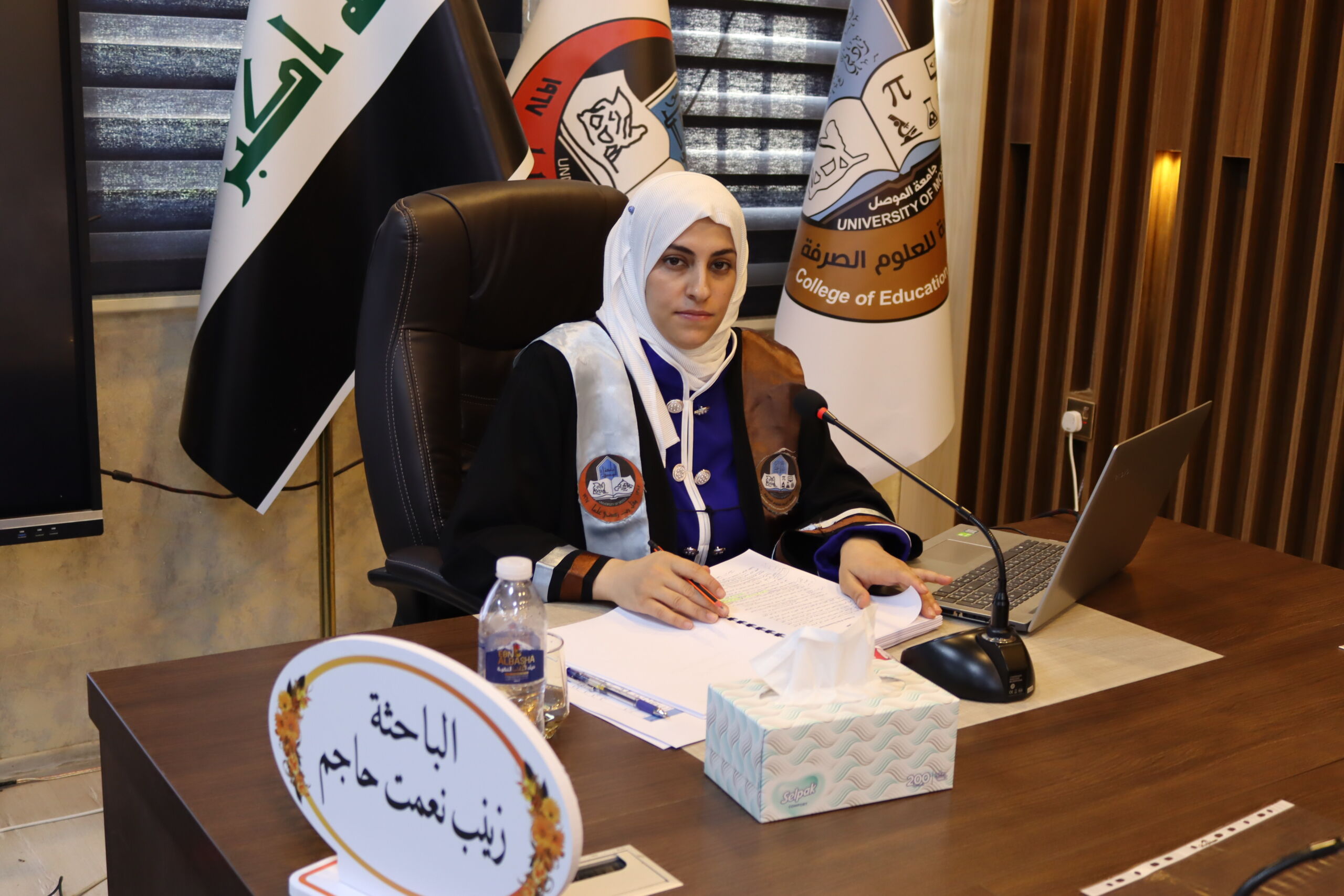 تحقيقا للهدف الرابع من اهداف التنمية المستدامة (التعليم الجيد) نوقشت في كلية التربية للعلوم الصرفة بجامعة الموصل رسالة الماجستير الموسومة ” أثر إستراتيجية مقترحة قائمة على معايير الممارسة الرياضياتية (ccssm) في تحصيل طالبات الصف الرابع العلمي لمادة الرياضيات وتنمية تفكيرهن الماهر”