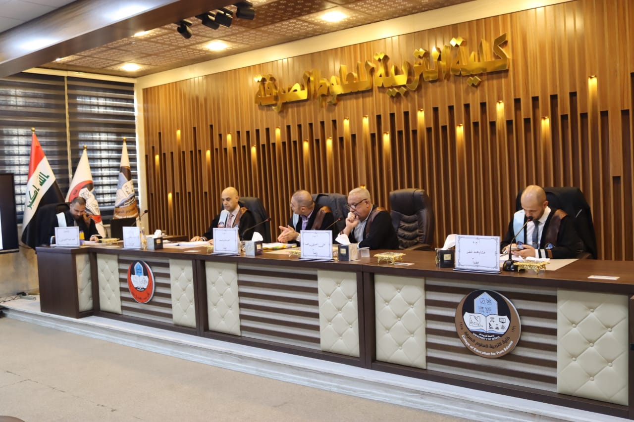 ترأس لجنة المناقشة الأستاذ المساعد الدكتور علي اعميري محمد وعضوية كل من الأستاذ المساعد الدكتور احمد غالب شيخو والأستاذ المساعد الدكتور هشام محمد خضر صالح وبإشراف وعضوية الأستاذ المساعد الدكتور محمد حازم صبري المشهداني.