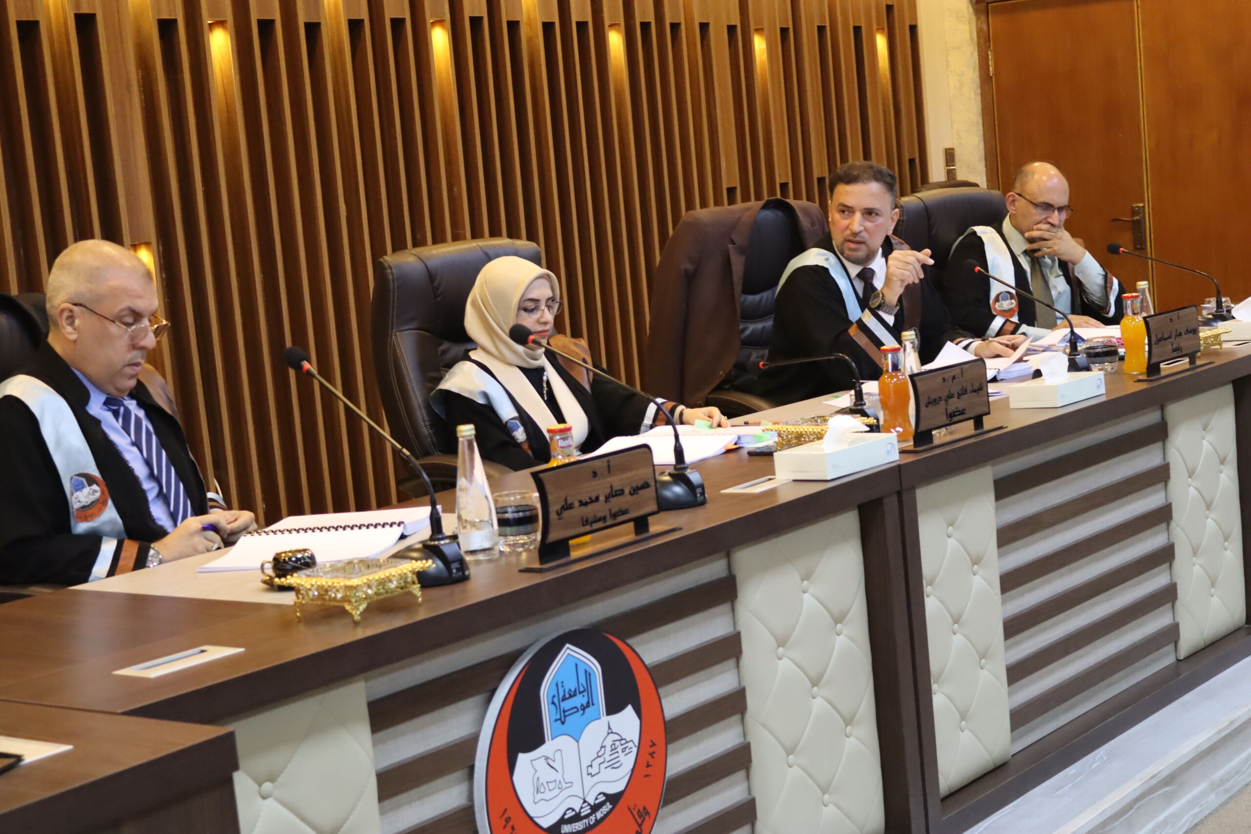 ترأس لجنة المناقشة الأستاذ الدكتور يوسف جبار إسماعيل وعضوية كل من الأستاذ المساعد الدكتورة شيماء فاتح علي درويش والأستاذ المساعد الدكتور محمد عبدالاله محمد وبإشراف وعضوية الأستاذ الدكتور حسين صابر محمد الراشدي.
