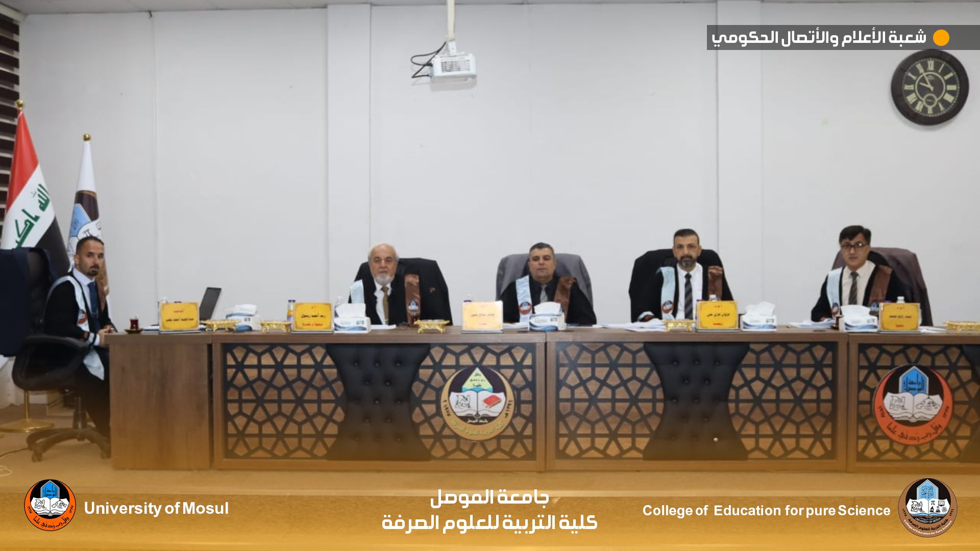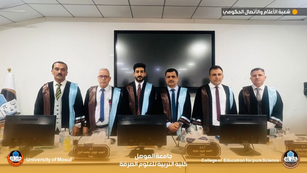 ترأس لجنة المناقشة الأستاذ المساعد الدكتور معتز صالح حسن وعضوية كل من الأستاذ المساعد الدكتور ليث رابح محمد والأستاذ المساعد الدكتور غزوان غازي علي وبإشراف وعضوية الأستاذ الدكتور رعد احمد رسول.