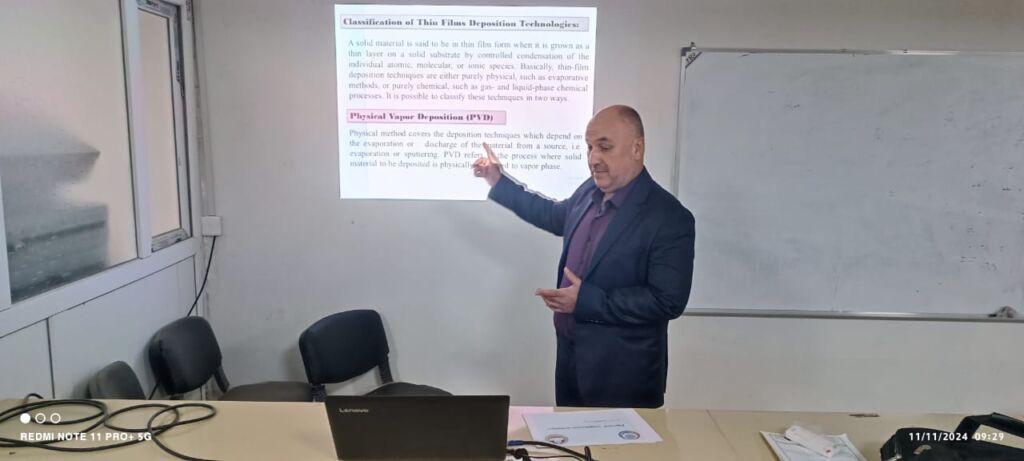 دورة تدريبية - قسم الفيزياء بعنوان" تقنيات ترسيب الاغشية الرقيقة "