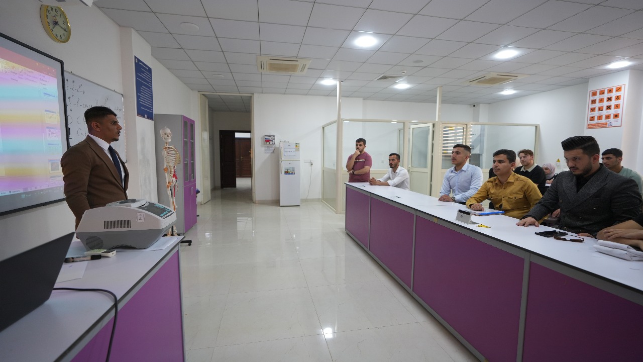 بدعم متواصل من السيد عميد كلية التربية للعلوم الصرفة الاستاذ الدكتور قيس اسماعيل ابراهيم المحترم لكوادره التدريسية وابنائه الطلبة نظم تدريسي وطلبة قسم الكيمياء المرحلة الثانية زيارة علمية الى جامعة النور وذلك يوم الثلاثاء الموافق ٨ نيسان ٢٠٢٥ هدفت الزيارة الى اطلاع الطلبة على المختبرات العلمية والاجهزة المختبرية والتقنيات الحديثة المستخدمة في الفحوصات السريرية.