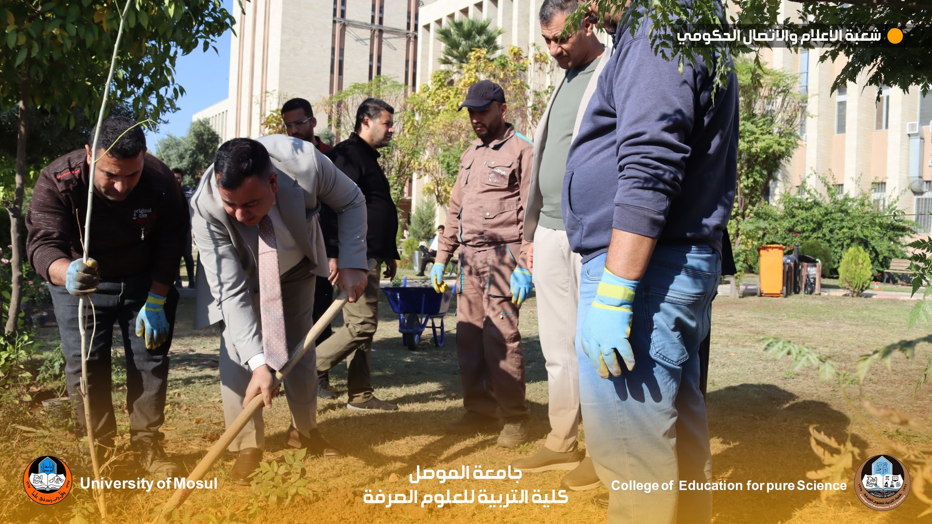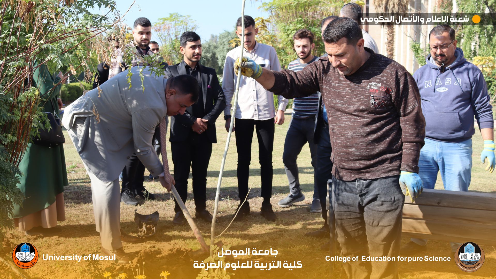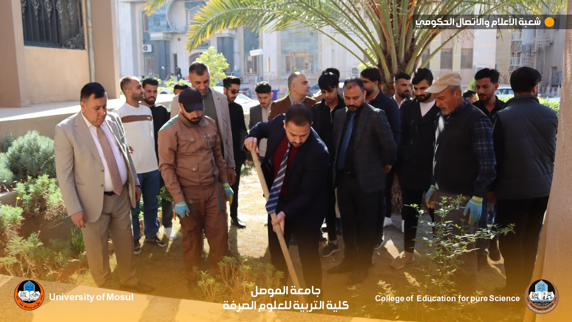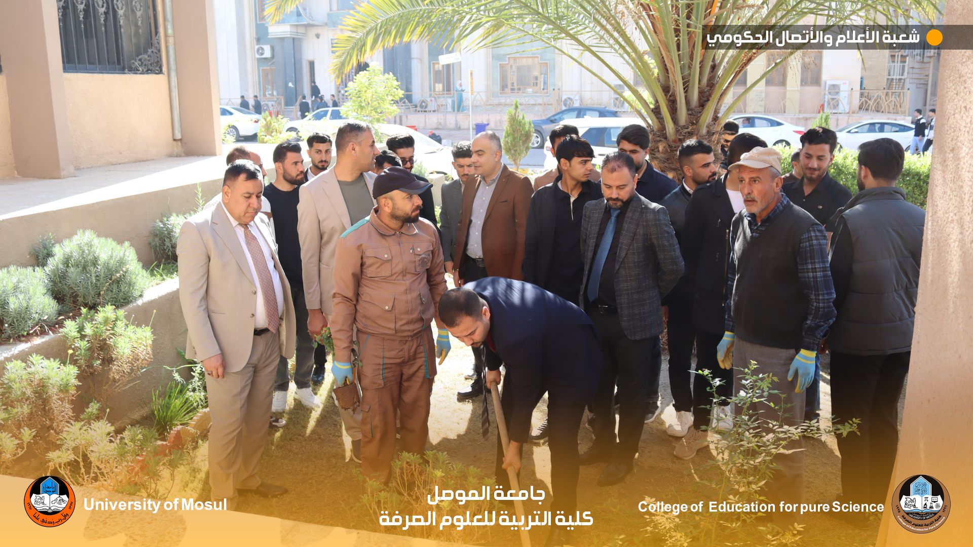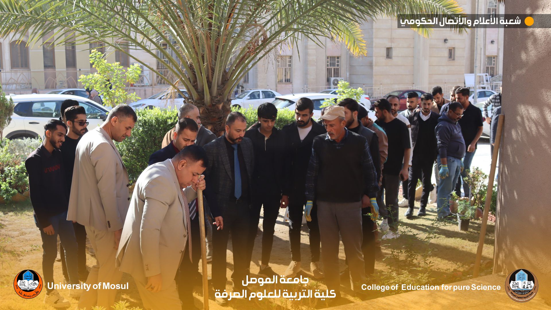 برعاية السيد رئيس جامعة الموصل الاستاذ الدكتور وحيد محمود الإبراهيمي المحترم وفي خطوة ايجابية تهدف الى تعزيز الوعي البيئي والمحافظة على جمالية الحرم الجامعي شاركت كلية التربية للعلوم الصرفة في مبادرة ” غراس الرحمة” التي اطلقتها رئاسة جامعة الموصل تحت اشراف الشعبة الزراعية في قسم شؤون الديوان وبالتعاون مع قسم الإعلام والاتصال الحكومي وذلك يوم الاربعاء الموافق ١٩ تشرين الثاني ٢٠٢٥ بمشاركة فعالة من قبل السيد عميد الكلية الاستاذ الدكتور جاسم فتحي علي المحترم والسيد معاون العميد للشؤون الإدارية الاستاذ المساعد الدكتور يونس سعدي سعيد المحترم والسيد معاون العميد للشؤون العلمية الاستاذ المساعد الدكتور عزام صلاح الدين يونس المحترم وعدد من اساتذة وطلبة الكلية ممايعكس روح العمل الجماعي والمسؤولية المشتركة، شهدت المبادرة زراعة مجموعة متنوعة من الأشجار والشتلات والنباتات في حدائق الكلية لتعزيز المساحات الخضراء وخلق بيئة مستدامة واعرب المشاركون عن فخرهم واعتزازهم بهذه المساهمة البيئية مؤكدين أن مبادرة “غراس الرحمة” تمثل خطوة عملية وايجابية نحو تحقيق رؤية جامعة الموصل في الحفاظ على البيئة وبناء حرم جامعي اكثر جمالا واستدامة للأجيال القادمة.
