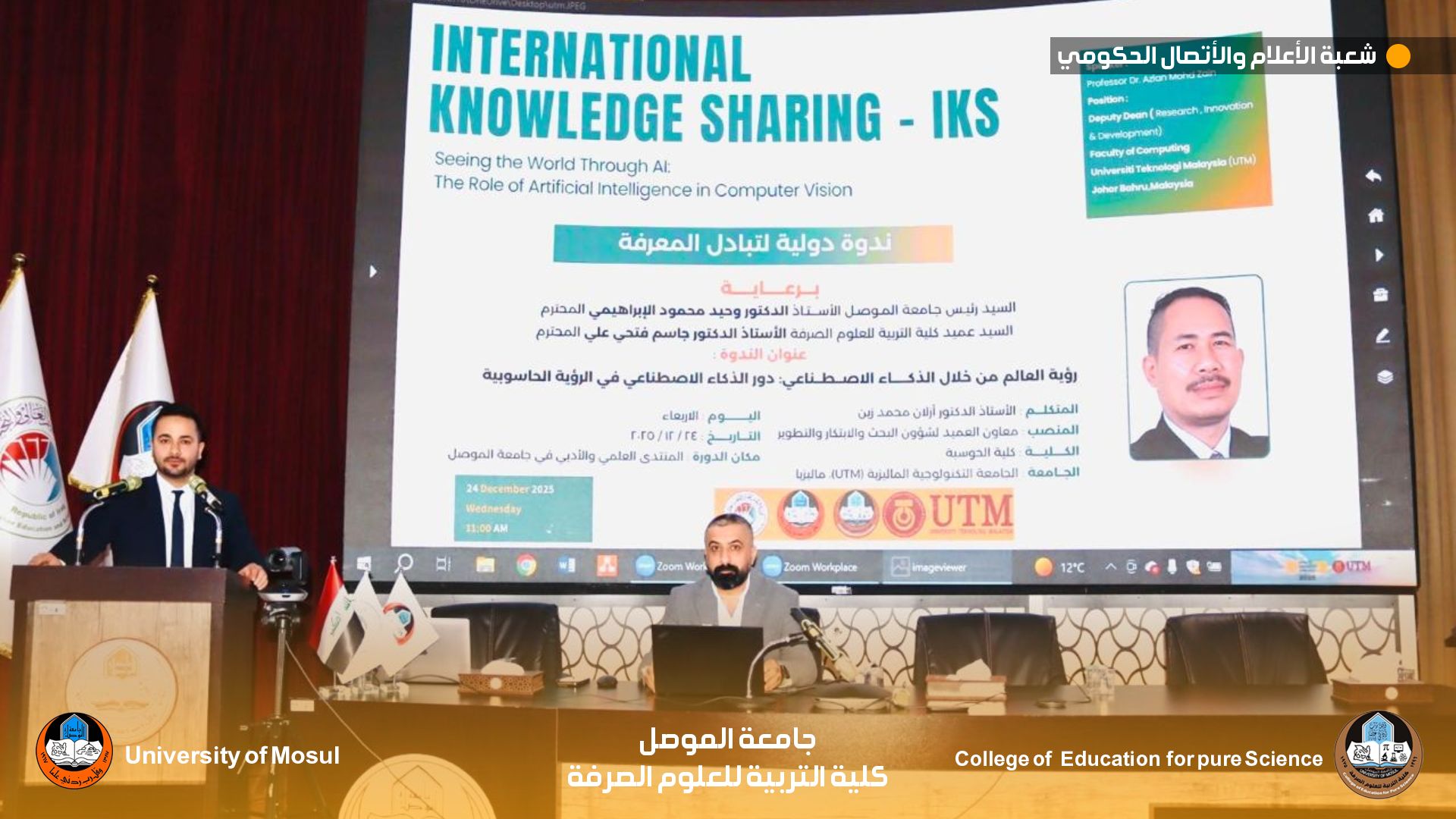 برعاية السيد رئيس جامعة الموصل الاستاذ الدكتور وحيد محمود الإبراهيمي المحترم وبإشراف السيد عميد كلية التربية للعلوم الصرفة الاستاذ الدكتور جاسم فتحي علي المحترم اقامت وحدة تسويق النتاجات العلمية في كلية التربية للعلوم الصرفة وبالتعاون مع شعبة تسويق النتاجات العلمية/ قسم حدائق العلوم والتكنولوجيا في رئاسة جامعة الموصل ورشة عمل تعريفية عن قسم حدائق العلوم والتكنولوجيا وذلك يوم الخميس الموافق ٢٠ تشرين الثاني ٢٠٢٥ حاضر فيها المدرس الدكتورة هند خضر احمد مسؤولة شعبة تسويق النتاجات العلمية والمدرس المساعد زبيدة محمود صالح مسؤولة وحدة تسويق النتاجات العلمية هدفت الورشة اعطاء نبذة تعريفية عن قسم حدائق العلوم والتكنولوجيا في رئاسة جامعة الموصل الذي يشجع ويدعم الافكار البحثية والمشاريع الريادية وتحويلها الى تطبيقات عملية تسهم في خدمة المجتمع والتنمية المستدامة.