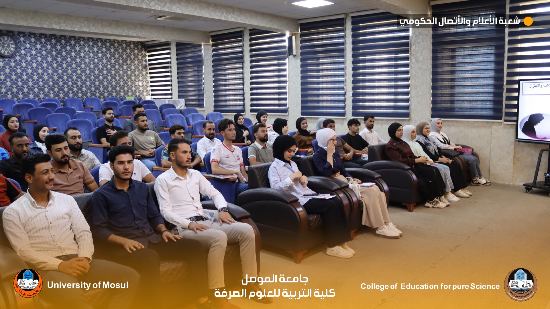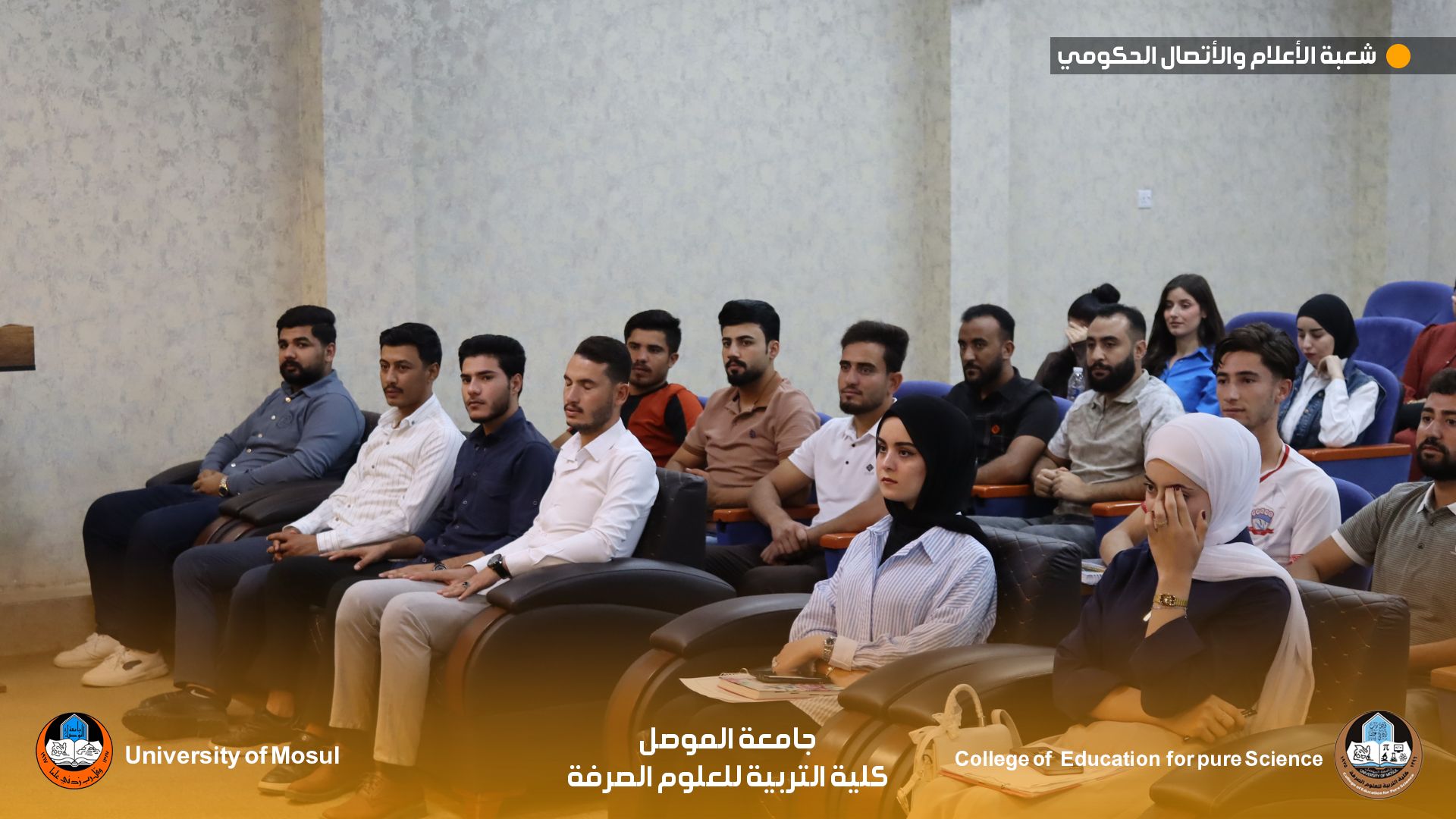 برعاية السيد رئيس جامعة الموصل الأستاذ الدكتور وحيد محمود الإبراهيمي المحترم، وبإشراف السيد عميد كلية التربية للعلوم الصرفة الأستاذ الدكتور جاسم فتحي علي المحترم، أقامت لجنة الإشراف على طلبة الأقسام الداخلية في كلية التربية للعلوم الصرفة محاضرتين توعويتين مخصصتين لطلبة الأقسام الداخلية، وذلك يوم الاثنين الموافق ٢٧ تشرين الاول ٢٠٢٥، وعلى رحاب قاعة المناقشات في بناية عمادة الكلية.