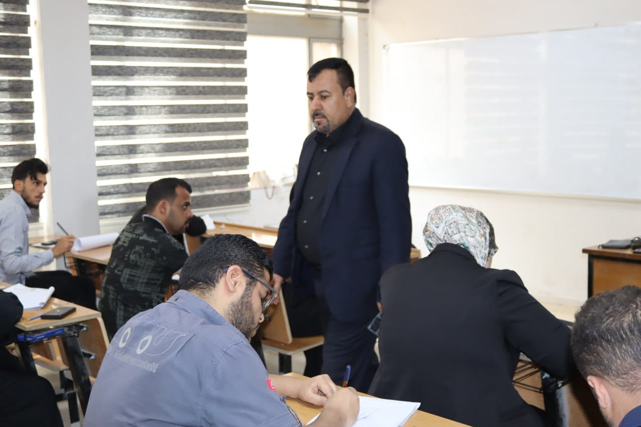 تفقد السيد عميد كلية التربية للعلوم الصرفة الاستاذ المساعد الدكتور جاسم فتحي علي المحترم وبرفقته السادة المعاونين سير الامتحانات النهائية اليوم السبت الموافق ٣ أيار ٢٠٢٥ شملت المتابعة تفقد القاعات الامتحانية والاطلاع على أداء الطلبة في الامتحانات النهائية كما تم التأكد من التزام الطلبة والكوادر التدريسية بالتعليمات الوزارية، لضمان سير العملية الامتحانية بانسيابية ونجاح.