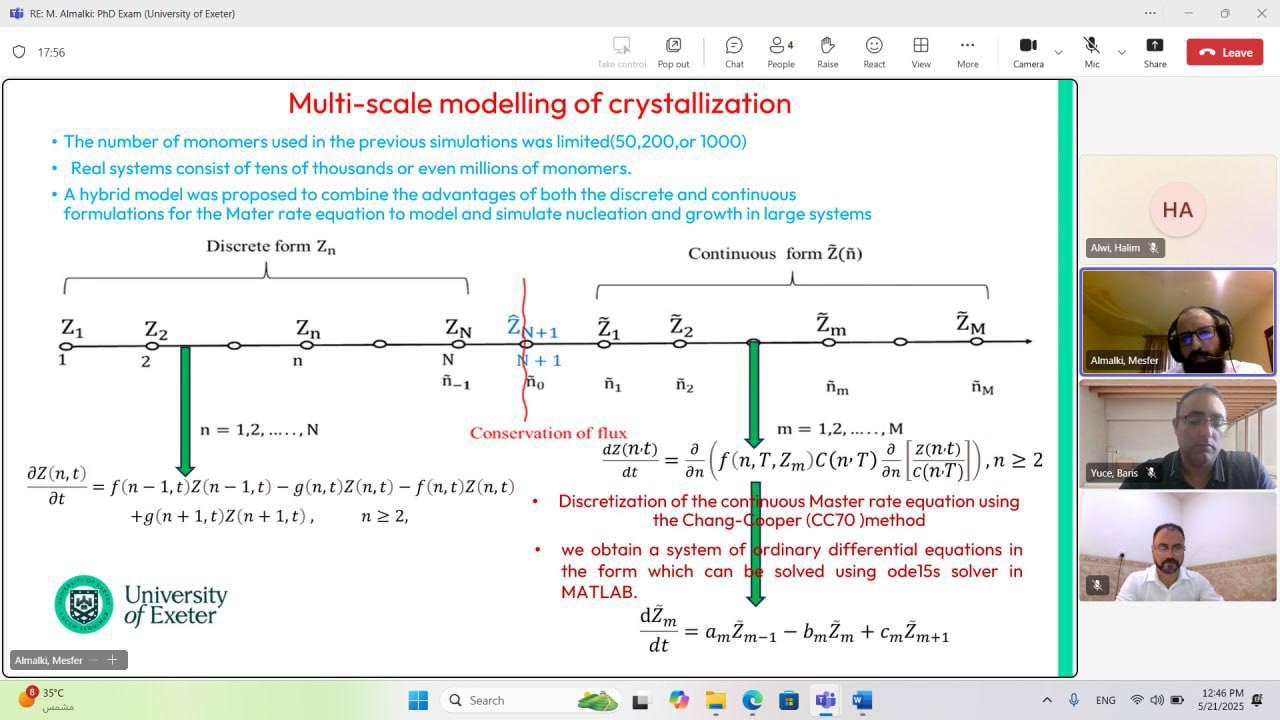 ضمن السمعة العلمية والاكاديمية العالية للكادر التدريسي في كليتنا اختارت جامعة اكستر البريطانية الاستاذ المساعد الدكتور عزام صلاح الدين يونس العدول التدريسي في قسم الرياضيات كمناقش خارجي لمناقشة اطروحة الدكتوراه لاحد طلبتها وجرت المناقشة اليوم الاربعاء الموافق ٢١ أيار ٢٠٢٥ عبر منصة Teams.