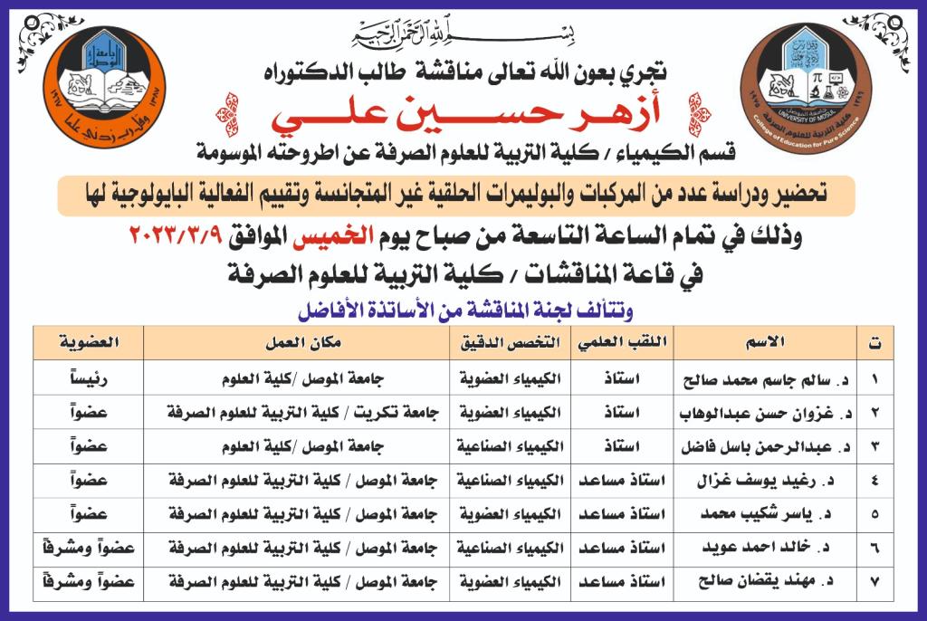 مناقشة أطروحة دكتوراه -قسم الكيمياء