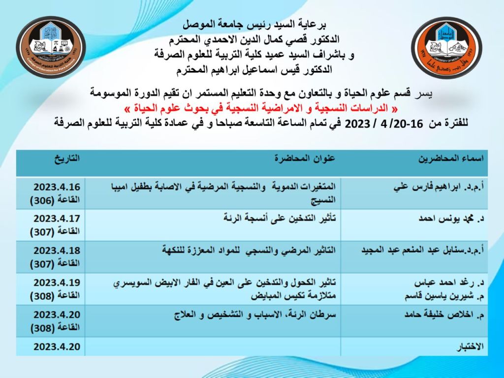 نوقشت في كلية التربية للعلوم الصرفة بجامعة الموصل أطروحة الدكتوراه الموسومة ” حركية وثرموداينميكية امتزاز بعض الصبغات الغذائية الصناعية باستخدام مواد مازة مختلفة ودراسة استقراريتها والعوامل المؤثرة عليها “،