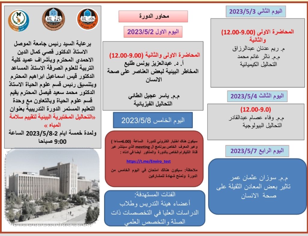 نوقشت في كلية التربية للعلوم الصرفة بجامعة الموصل أطروحة الدكتوراه الموسومة ” التقدير الطيفي لبعض المركبات الدوائية المستخدمة في علاج الأزمات القلبية ومتابعة المتغيرات الكيموحيوية “،
