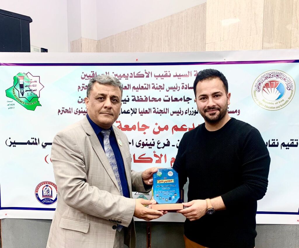 وقدم السيد العميد الاستاذ الدكتور قيس اسماعيل ابراهيم كتاب شكر وتقدير الى الاستاذ المساعد الدكتورة سهاد عبدالامير عبود من كلية التربية ابن الهيثم / جامعة بغداد لمشاركتها في لجنة المناقشة وتحملها عناء السفر.