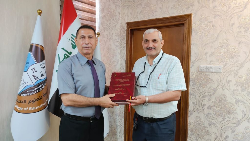 تراس لجنة المناقشة الاستاذ الدكتورة وفاء محمود يونس وعضوية كل من الاستاذ الدكتورة سولاف فائق محمد علي من جامعة السليمانية/ كلية التربية الاساسية , المدرس الدكتور رضوان محمد مصطفى وبإشراف وعضوية كل من الاستاذ المساعد الدكتورة مآرب محمد احمد والاستاذ الدكتور مثنى جاسم محمد.