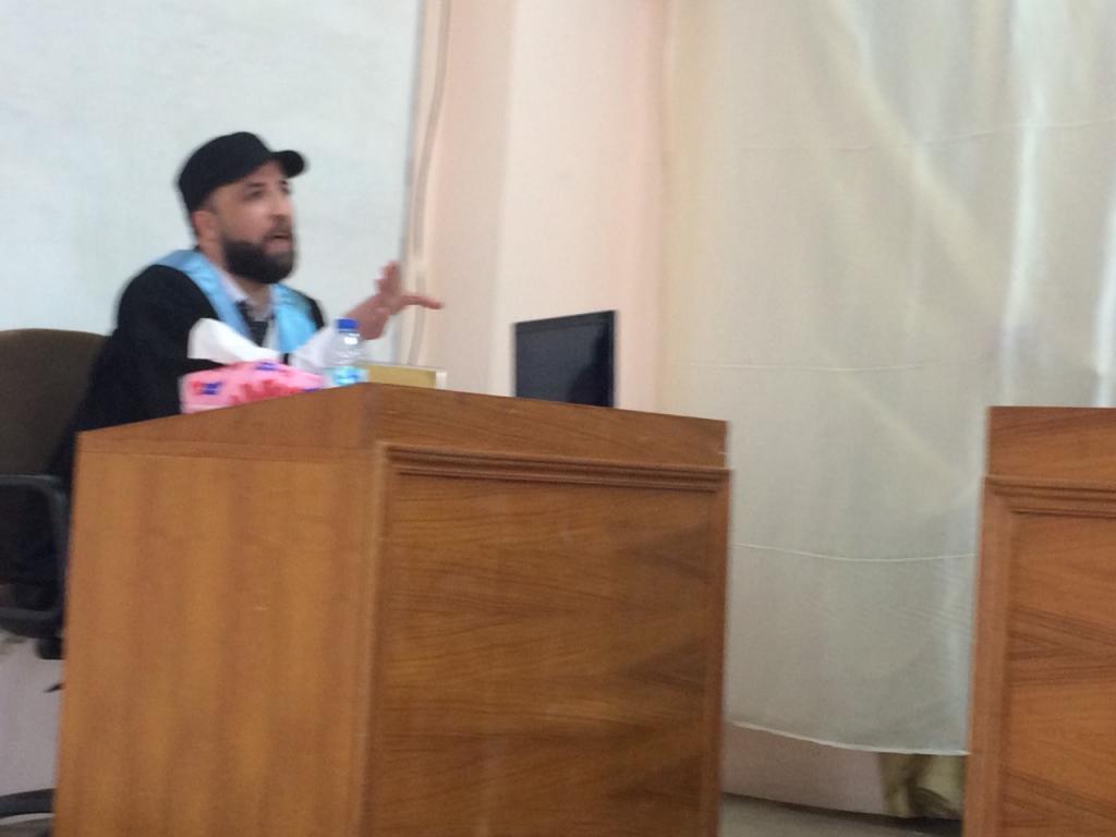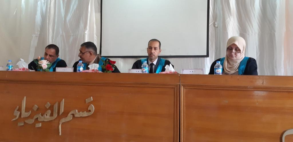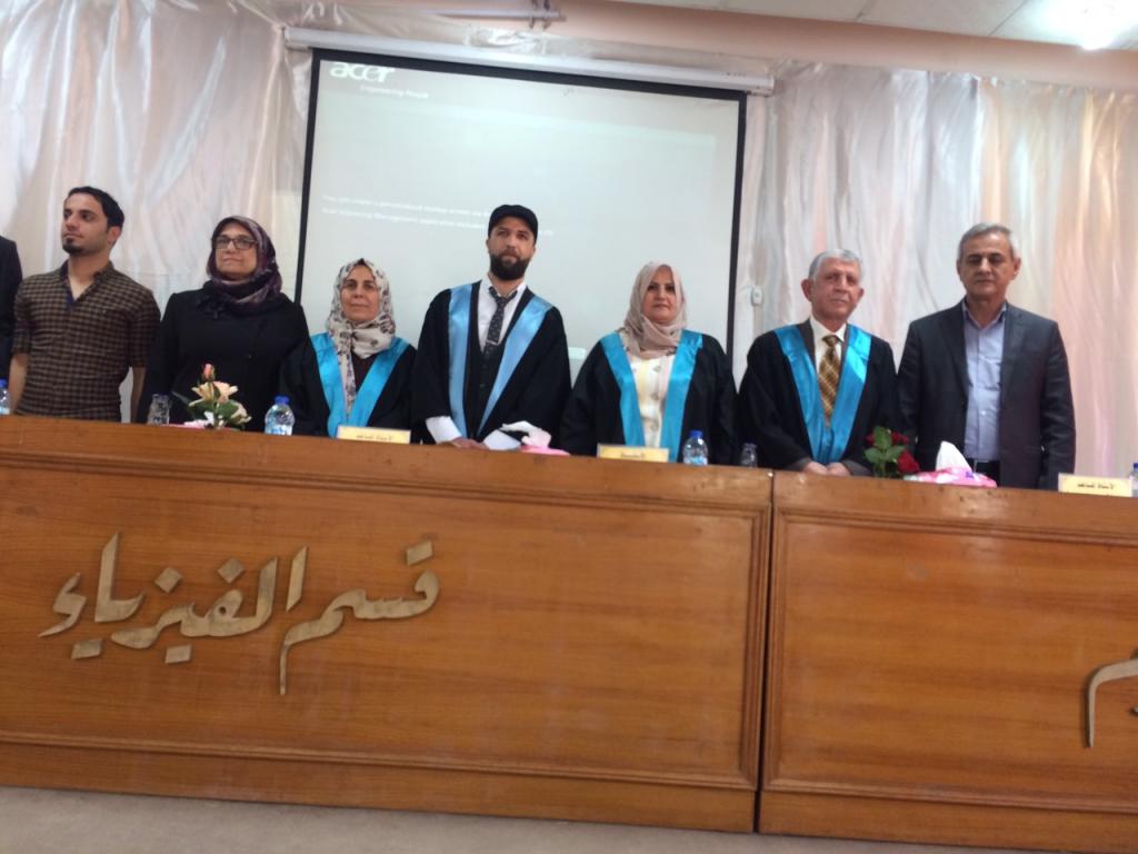 مناقشة طالب الماجستير أحمد علي رشو لرسالته الموسومة (تصميم ليزر نانو واير DBRZnO )