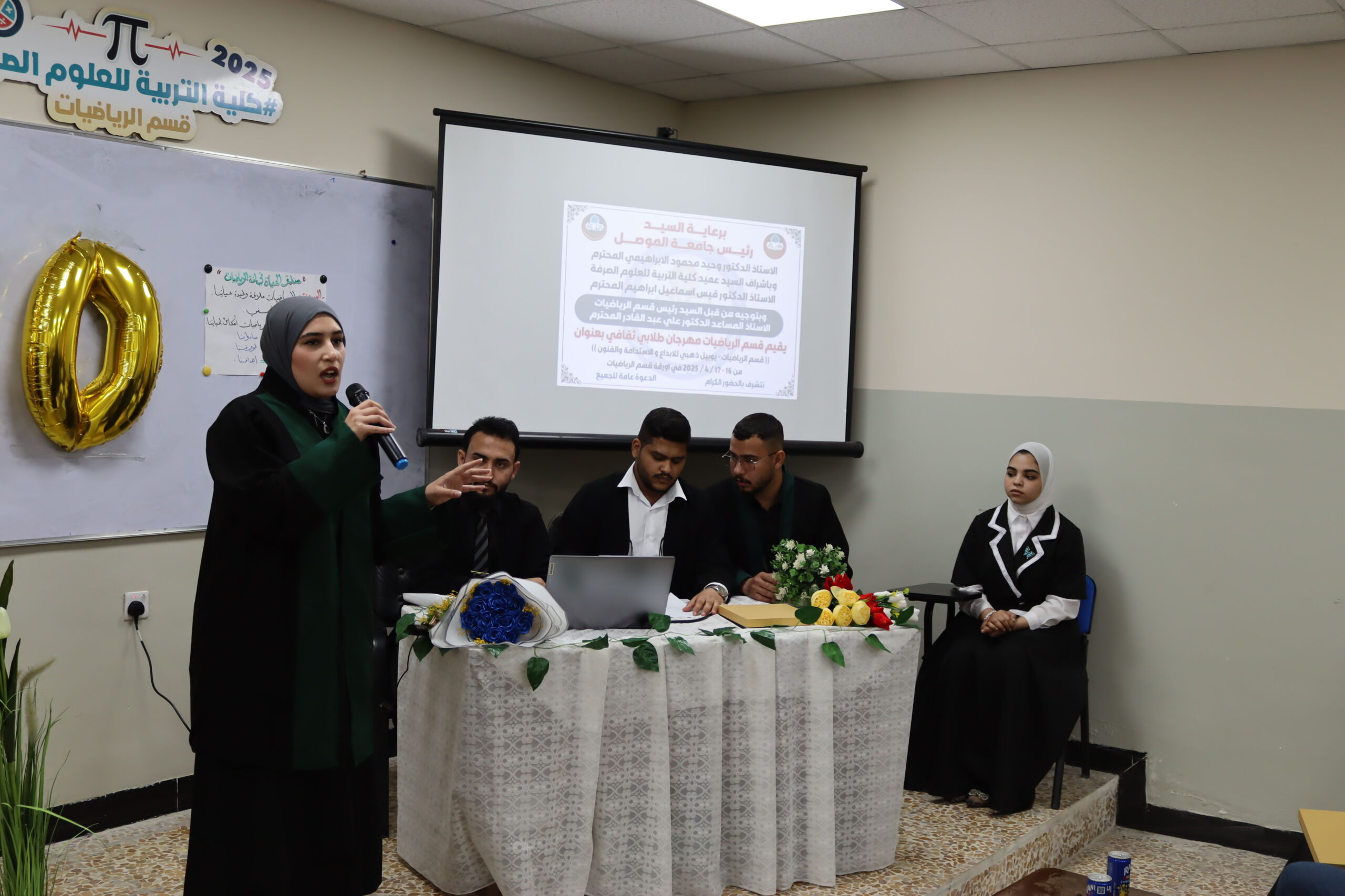 وقد افتتح المهرجان السيد عميد الكلية الاستاذ الدكتور قيس اسماعيل ابراهيم المحترم والسيد معاون العميد للشؤون العلمية الاستاذ الدكتور ياسر يحيى قاسم المحترم والسيد رئيس قسم الرياضيات وبحضور عدد كبير من التدريسيين والموظفين والطلبة الاعزاء.