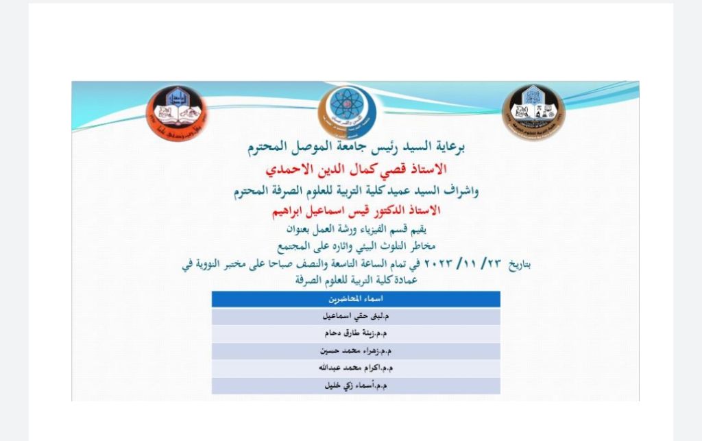 وباشراف السيد عميد التربية للعلوم الصرفة الاستاذ الدكتور قيس اسماعيل ابراهيم المحترم