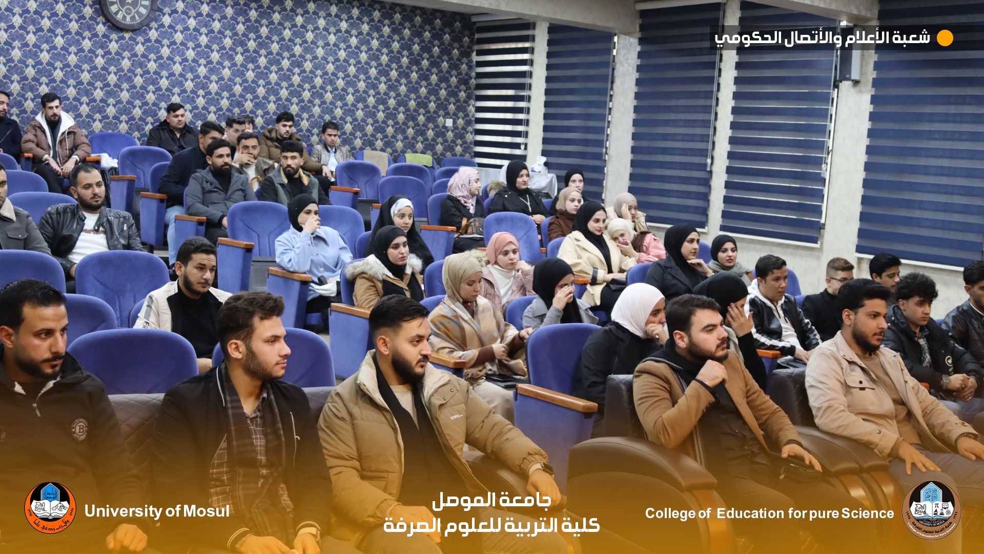 برعاية السيد رئيس جامعة الموصل الاستاذ الدكتور وحيد محمود الابراهيمي المحترم وباشراف السيد عميد كلية التربية للعلوم الصرفة الاستاذ الدكتور جاسم فتحي علي المحترم، اقامت شعبة النشاطات الطلابية في كلية التربية للعلوم الصرفة ورشة عمل حول العمل التطوعي بعنوان “كيف تبدأ رحلتك في خدمة المجتمع”.