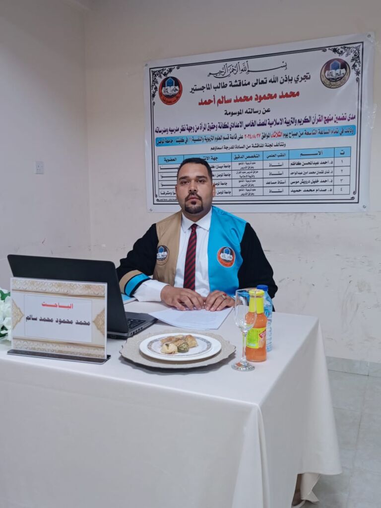 ناقشت كلية التربية للعلوم الإنسانية في جامعة الموصل رسالة ماجستير عن ( اثر استراتيجية المكعب في تحصيل لاطالبات الصف الثاني المتوسط لمادة القران الكريم والتربية الاسلامية وتنمية تفكيرهن البصري ) يوم الاثنين 3/9/2024 , حضر جنابها منها الأستاذ الدكتور حازم ذنون إسماعيل عميد الكلية ورئيس القسم الدكتور مضر حيدر محمود اليوزبكي وعدد من تدريسي الكلية