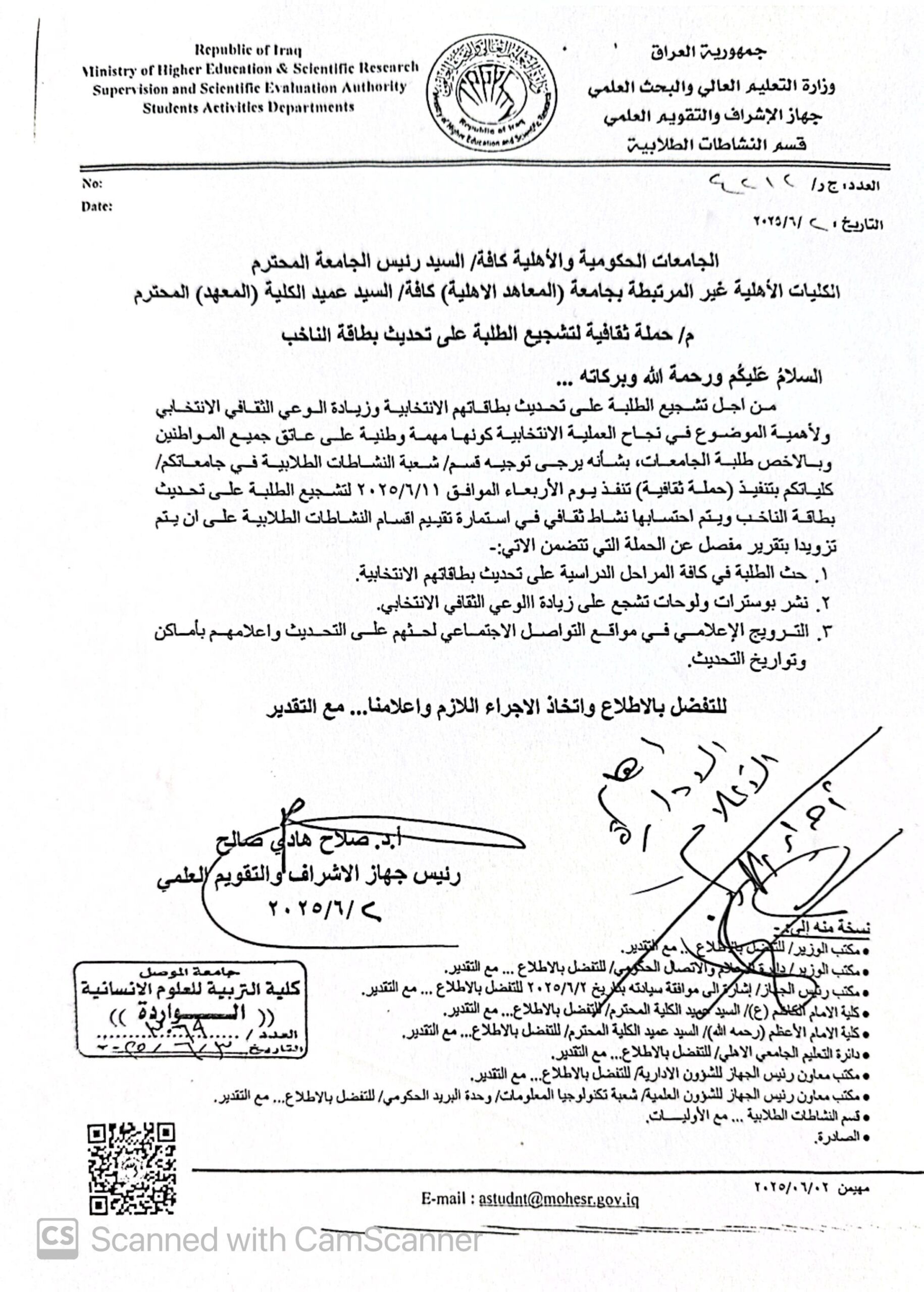 عقد مجلس كلية التربية للعلوم الإنسانية في جامعة الموصل جلسته الدورية السابعة للعام الدراسي ٢٠٢٥–٢٠٢٦، صباح يوم الاثنين الموافق ٢٤ تشرين الثاني ٢٠٢٥، برئاسة الأستاذ [إقرأ المزيد]