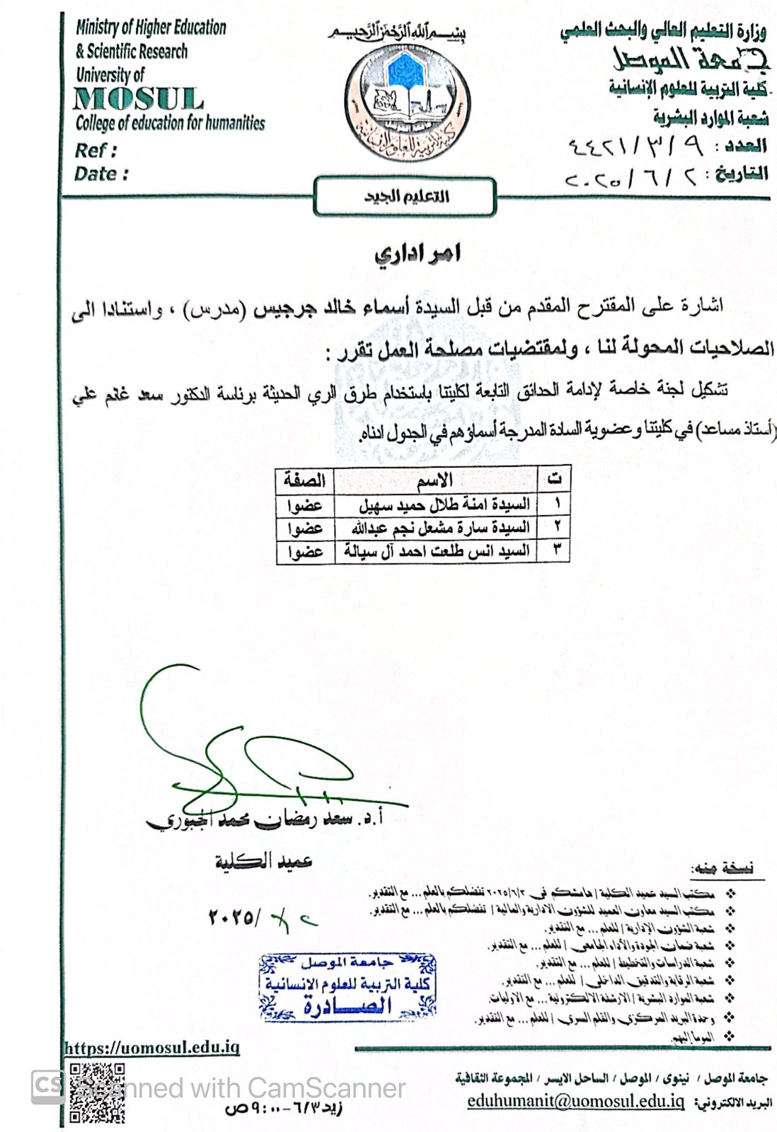 برعاية السيد رئيس جامعة الموصل الأستاذ الدكتور وحيد محمود الإبراهيمي المحترم، وبإشراف السيد عميد كلية التربية للعلوم الإنسانية الأستاذ الدكتور سعد رمضان محمد الجبوري المحترم، [إقرأ المزيد]