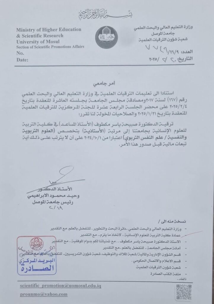 والاستاذ المساعد الدكتور سارية عبد الوهاب محمد