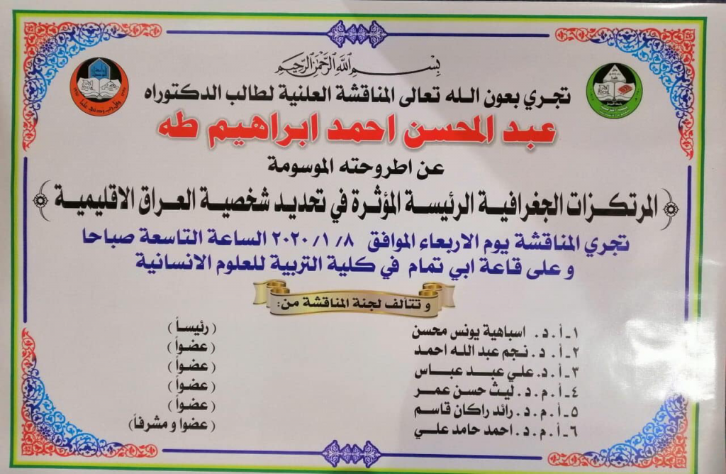 على قاعة أبي تمام في كلية التربية للعلوم الانسانية .