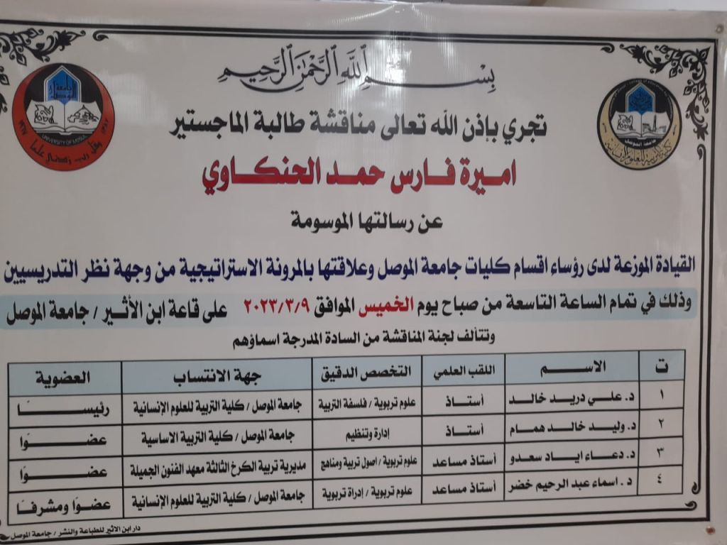 (القيادة الموزعة لدى رؤساء اقسام كليات جامعة الموصل وعلاقتها بالمرونة الاستراتيجية من وجهة نظر التدريسيين )