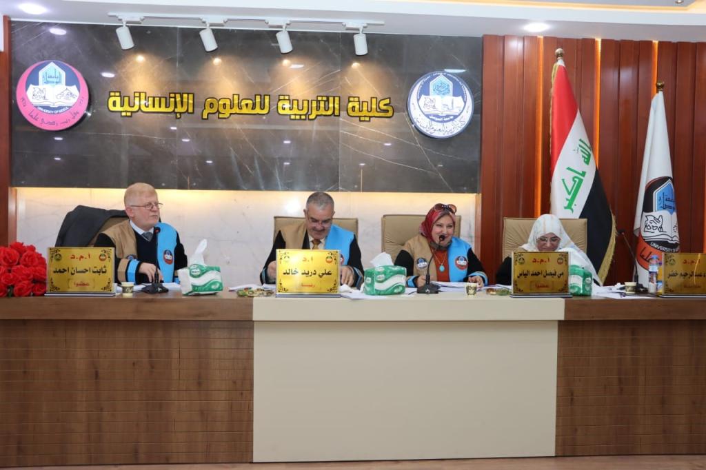 ناقش قسم العلوم التربوية والنفسية في كلية التربية للعلوم الإنسانية بجامعة الموصل رسالة الماجستير عن : (إدارة الكفاءات لدى رؤساء اقسام كليات جامعة الموصل وعلاقتها بصنع القرار الاستراتيجي لديهم من وجهة نظر التدريسيين) يوم الاربعاء (14/12/2022) حضر جانبا منها الاستاذ الدكتور حازم ذنون اسماعيل السبعاوي عميد الكلية وعدد من تدريسيي الكلية.تناولت الرسالة التي تقدم بها الطالب (سرمد محمود حميد احمد) في قسم العلوم التربوية والنفسية إدارة الكفاءات لدى رؤساء اقسام كليات جامعة الموصل وعلاقتها بصنع القرار الاستراتيجي لديهم من وجهة نظر التدريسيين.تطرقت الدراسة الى اهمية إدارة الكفاءات وعلاقتها بصنع القرار الاستراتيجي في مساعدة المؤسسات على بلوغ اهدافها الاستراتيجية بما تمتلكه من كفاءات مما يسهم في رفع مستوى الجامعات اذ توليهما الجامعات والعديد من المؤسسات التعليمية اهمية كبيرة لكونهما اصبح مطلباً عالمياً واستراتيجياً لا يستهان بهما من اجل تحقيق الاجود والافضل.تهدف الرسالة التعرف الى مستوى إدارة الكفاءات لدى رؤساء اقسام كليات جامعة الموصل من وجهة نظر التدريسيين تبعاً لمتغير الجنس (ذكور ـــ اناث) التخصص (علمي ـــ انساني) اللقب العلمي (استاذ ـــ استاذ مساعد/ مدرس ـــ مدرس مساعد) وكذلك التعرف الى مستوى صنع القرار الاستراتيجي لدى رؤساء اقسام كليات جامعة الموصل من وجهة نظر التدريسيين تبعاً لمتغير الجنس (ذكورـــ اناث) التخصص (علمي ـــ انساني) اللقب العلمي (استاذ ـــ استاذ مساعد / مدرس ـــ مدرس مساعد).ترأس لجنة المناقشة :الاستاذ الدكتور علي دريد خالد ، وعضوية كل من الاستاذ المساعد الدكتور مي فيصل احمد الياس ، والاستاذ المساعد الدكتور ثابت احسان احمد،وبأشراف وعضوية الاستاذ المساعد الدكتور اسماء عبد الرحيم خضر الخياط.