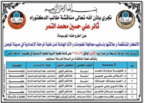 مناقشة أطروحة دكتوراه في كلية التربية للعلوم الإنسانية بجامعة الموصل عن : الأفكار المتناقضة وعلاقتها بأساليب معالجة المعلومات والأنا الهادئة….