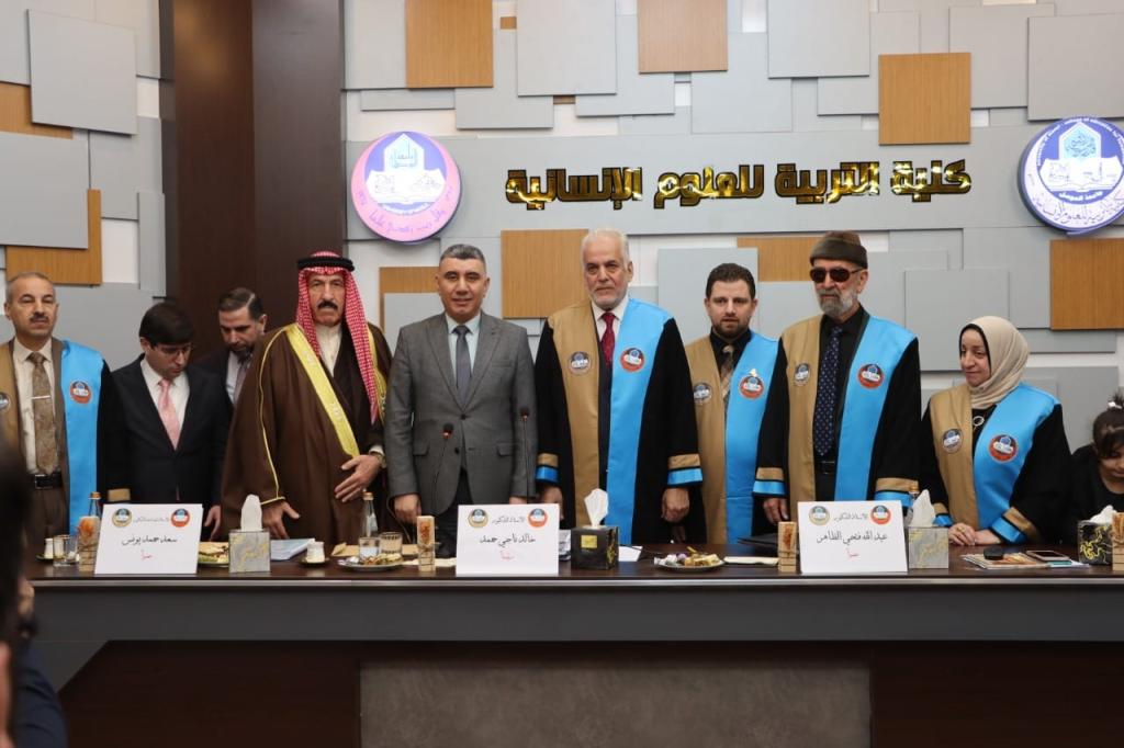 ناقش قسم اللغة العربية في كلية التربية للعلوم الإنسانية بجامعة الموصل رسالة الماجستير الموسومةبـ(الأنا في نثر الإمام علي بن أبي طالب كرّم الله وجهه)يوم الاثنين ٢٦ كانون الاول ٢٠٢٢، حضر جانباً منهاالسيد نجم عبد الله الجبوري محافظ نينوى .والاستاذ الدكتور قصي كمال الدين الاحمدي رئيس جامعة الموصلو الأستاذ الدكتور حازم ذنون إسماعيل السبعاوي عميد الكليةوعدد كبير من أساتذة قسم اللغة العربية في الكلية .تناولت الرسالة التي تقدّم بها الطالب (عهد طلال سليم الخالدي) الى قسم اللغة العربية حضور الانا في النصوص النثرية التي قالها الامام علي بن ابي طالب كرم الله وجهه ، وقد تطرقت الدراسة إلى حركة الانا في النص النثري الإسلامي ومدى فاعليتها في بناء هذا النص فضلا عن كونها وقفت عند المدلولات اللغوية للـ(أنا) والنفسية والفلسفية والدينية وقد جاءت في فصلين وتمهيد، تهدف الرسالة إلى بناء منظومة فكرية قادرة على إعادة قراءة النص الادبي عامة والنص الإسلامي خاصة من اجل بناء منظومة إنسانية قادرة على التعايش مع جميع المتغيرات والظروف.ترأس لجنة المناقشة:الأستاذ الدكتور خالد ناجي السامرائيوعضوية كل من الأستاذ الدكتور عبد الله فتحي الظاهر، والأستاذ المساعد الدكتور سعد حمد الراشديوبإشراف وعضوية الأستاذ الدكتور إيمان خليفة الحيالي.