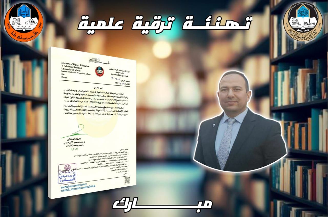 تهنئة ترقية علمية .. تتقدم عمادة كلية التربية للعلوم الإنسانية ممثلة بعميدها الأستاذ الدكتور ( سعد رمضان محمد الجبوري ) بأجمل التهاني وأرق التبريكات للدكتور [إقرأ المزيد]