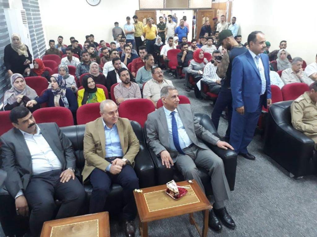 افتتح السيد ممثل رئيس جامعة الموصل الاستاذ الدكتور اكرم محمود البدو مساعد رئيس الجامعة للشؤون الادارية قاعة (ابي تمام) في كلية التربية للعلوم الانسانية وبحضور ورعاية من السيد عميد كلية التربية للعلوم الانسانية الدكتور ليث حسن عمر وعلى هامش افتتاح قاعة ابي تمام اقامت شعبة الانشطة الطلابية المتمثلة بالدكتور محمود مطر البدراني ندوة علمية بعنوان (المخدرات آفة المجتمع) تحت شعار اوقف المخدرات غير حياتك وبحضور ممثل السيد رئيس جامعة الموصل الاستاذ الدكتور اكرم محمود البدو وتضمن منهاج الندوة آيات من ذكر الحكيم تلاها الدكتور مسعود من قسم اللغة العربية وبعدها وقفة لقراءة سورة الفاتحة على ارواح الشهداء تلاها عرض للسلام الجمهوري وبعدها بدأت الجلسة الاولى برئاسة الدكتور قيس محمد علي معاون العميد للشؤون العلمية ، وتضمنت محاضرة الاستاذ الدكتور نضال مؤيد مال الله من قسم التاريخ بعنوان ( الجذور التاريخية للمخدرات وانتشارها ) وبعدها القى العقيد ثابت خلف الذي ناب عن مدير قسم مكافحة المخدرات العقيد ثائر عز الدين الكطمير محاضرة بعنوان ( العقوبات القانونية المترتبة على المتعاطي للمخدرات ) وبعدها القى الدكتور ياسر محفوظ حامد التدريسي من قسم العلوم التربوية والنفسية محاضرة بعنوان (تعاطي المخدرات واثرها على الفرد والمجتمع) وبعدها القى كل من الاستاذة سهى جابر عبداللطيف والسيد محمود حازم سليمان من كلية التمريض محاضرة بعنوان ( توعية الشباب حول مخاطر المخدرات) .