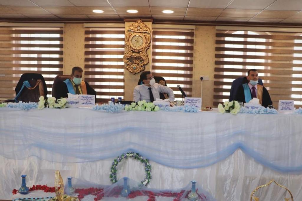 جرت صباح يوم الاربعاء الموافق ١٢ / ٨ / ٢٠٢٠ وعلى قاعة علوم القرآن في الكلية مناقشة رسالة الماجستير والموسومة