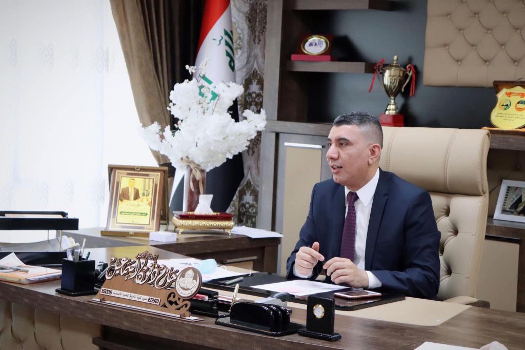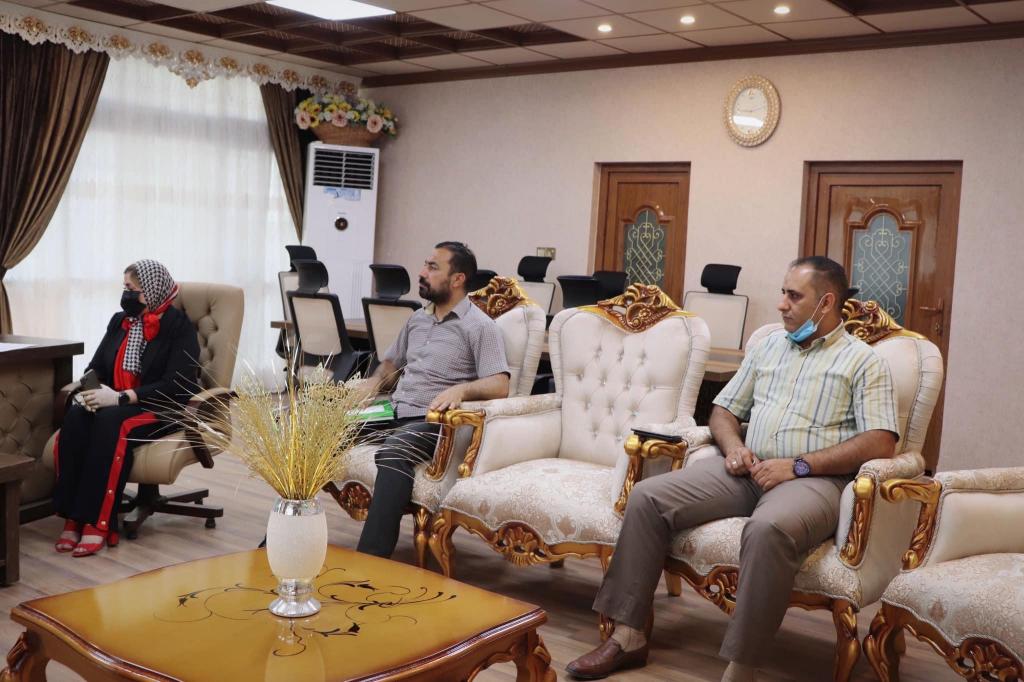 وبحضور المعاونين ، وحضهم على متابعة سير الامتحانات بانسيابية وسهولة ،وتذليل الصعاب التي تعتري الطلاب وقت أداء الامتحان والدخول إلى الصفوف الالكترونية..