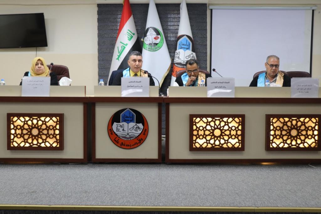 ( التوجيه النحوي للقراءات القرآنيَّة في كتاب التصريح بمضمون التوضيح للأزهري )ناقش قسم اللغة العربية في كلية التربية للعلوم الإنسانية بجامعة الموصل رسالة الماجستير عن ( التوجيه النحوي للقراءات القرآنيَّة في كتاب التصريح بمضمون التوضيح للأزهري)يوم الاحد 2021/6/20تناولت الرسالة التي تقدَّمَ بها الطالب ( ثامر صبري مجيد عبدالله ) في قسم اللغة العربية، توجيه القراءات القرآنيَّة الواردة في كتاب التصريح بمضمون التوضيح.تطرَّقتِ الدِّراسة إِلى دراسةَ ما ذكرَهُ الشَّيخ خالد الأَزهري ت(905هـ) من توجيهٍ للقراءات القرآنيَّة الواردة في كتابه.وتهدف الرسالة توجيه القراءات القرآنيَّة الواردة في كتاب التصريح بمضمون التوضيح نحويًّا على مختلف أَنواعها القراءات السبعة والعشرة وما فوقها والقراءات غير المتواترة وذكر آراء علماء الاحتجاج والنحو والتفسير حولها.ترأَّسَ لجنة المناقشة:-الأُستاذ الدكتور حازم ذنون إسماعيلوعضويَّة كلّ منالأُستاذ المساعد الدكتور وعد دليان أَحمدو الأُستاذ المساعد الدكتور زهراء سعد الدين شيت,و بإِشراف وعضويَّة الأُستاذ المساعد الدكتور صالح علي شيخ علي