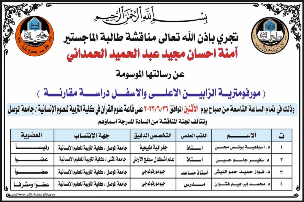 وعضوية المعاونين وروؤساء الأقسام العلمية في الكلية. صباح يوم الأثنين الموافق ٢٦ حزيران ٢٠٢٣