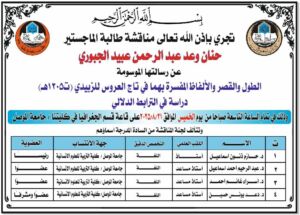 تناولت الرسالة التي تقدمت بها الطالبة (حنان وعد عبدالرحمن الجبوري) من قسم اللغة العربية دراسة الألفاظ المفسَّرة بالطول والقِصر في تاج العروس للزبيدي (ت ١٢٠٥هـ)، وركّزت على تحليل هذه الألفاظ من منظور دلالي، وذلك من خلال دراسة العلاقات الترابطية بينها كالترادف، والتضاد، والتكامل الدلالي, تناولت الدراسة اثنين وثلاثين لفظًا مفسَّرًا بالطول، وأربعةً وعشرين لفظًا مفسَّرًا بالقصر, وزّعت الدراسة هذه الألفاظ ضمن حقول دلالية متنوّعة، شملت الذوات (العاقل وغير العاقل)، والصفات، والمعاني المجرّدة, كشفت أنّ مفهومي الطول والقصر لم يُستعملا في المعجم للدلالة الحسية فقط، بل تضمّنا دلالات مجازية وأخلاقية واجتماعية متعلّقة بالمظهر والسلوك والقيمة الاجتماعية.