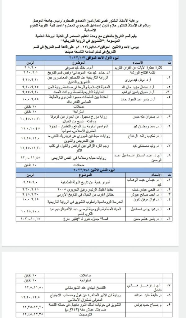 يوم الخميس المصادف 11/5/2023 ، حضر جانب منها الاستاذ الدكتور حازم ذنون إسماعيل عميد كلية التربية وعدد من تدريسي الكلية .