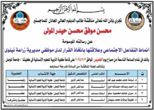 ناقشت كلية التربية للعلوم الإنسانية في جامعة الموصل رسالة الدبلوم العالي المعادل للماجستير