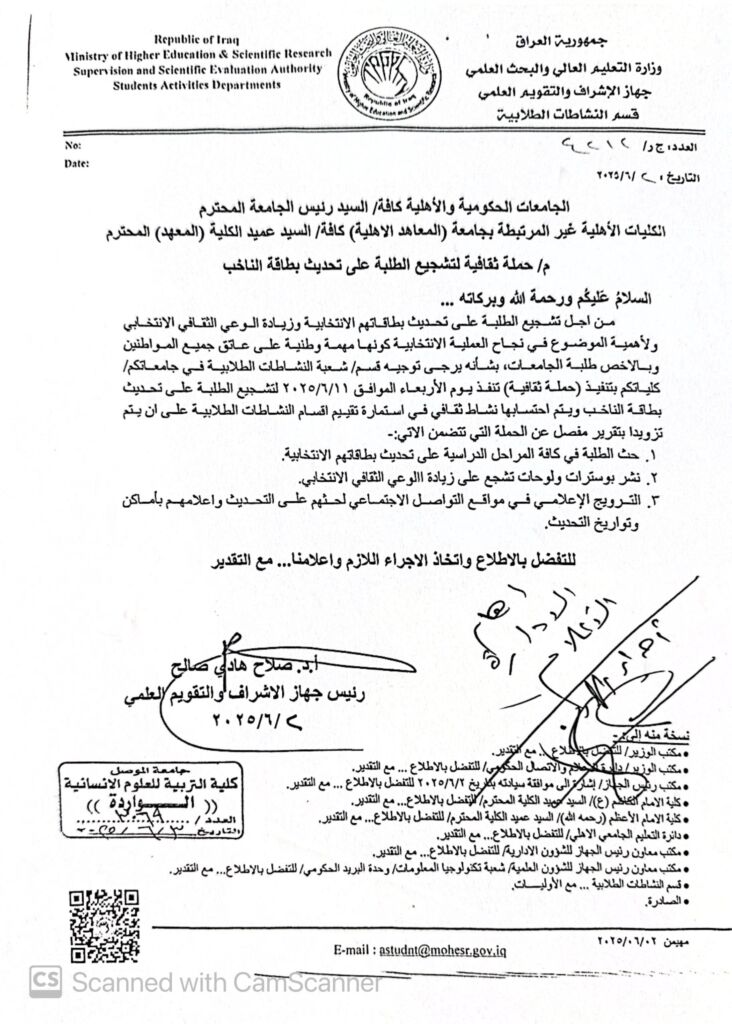 حملة توعوية لتشجيع الطلبة على تحديث بطاقة الناخب