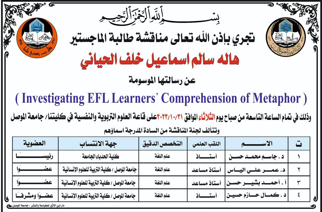 على رحاب قاعة كلية التربية للعلوم الإنسانية اليوم الاربعاء الموافق ١ تشرين الثاني ٢٠٢٣