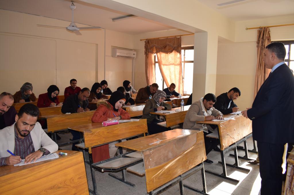 في اول يوم من ايام الامتحان النهائي للفصل الدراسي الاول لطلبة الدراسات العليا تفقد الاستاذ الدكتور حازم ذنون القاعات الدراسية التي احتضنت طلبة الدراسات العليا وهم يؤدون الامتحانات