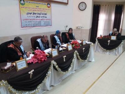 تمت وبعون من الله مناقشة طالبة الماجستير ( شيماء موفق حياوي) قسم العلوم التريوية والنفسية كلية التربية للعلوم الانسانية حامعة الموصل عن سالتها الموسومة ( اثر استراجية المحطات التعليمية في اكساب طالبات الصف الثاني المتوسط المفاهيم الاحيائية وتنمية استطلاعهن الاحيائي ) وحصلت الطاالبة على تقدير (( امتياز )) من يوم الاحد الموافق 19/11/2017 وكانت لجنة المناقشة تتكون كل منا.د عبد الرزاق ياسين عبد الله رئيساا.د محمد جاسم عبد الامير عضواد. مارب احمد محمد المولى عضواد. وفاء سعد يوسف عضوا مشرفا