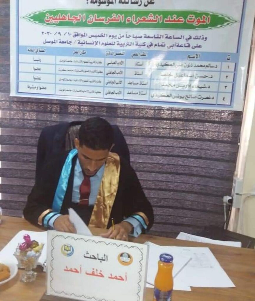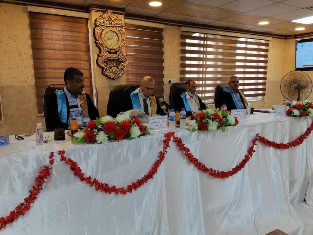 ترأس لجنة المناقشة الأستاذ المساعد الدكتور نصيف جاسم أسود الحبابي /جامعة تكريت وعضوية واشراف الأستاذ المساعد الدكتور أحمد حامد علي العبيدي / جامعة الموصل وعضوية كل من الأستاذ المساعد الدكتور يونس عبد الله علي الطائي /جامعة الموصل والدكتور أحمد طلال خضر العاني / جامعة الموصل