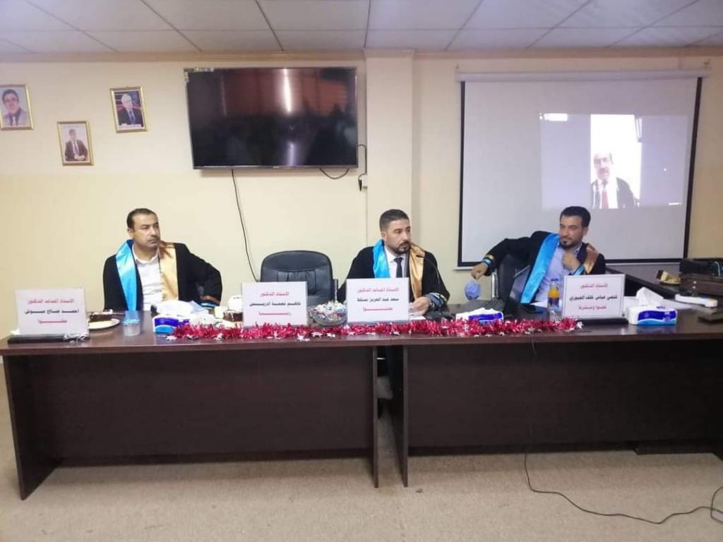 جرت صباح يوم الخميس الموافق ٢٠ / ٨ / ٢٠٢٠ وعلى قاعة عمر الطالب في الكلية مناقشة رسالة الماجستير والموسومة