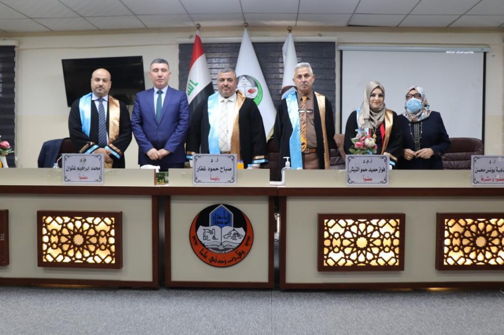 ترأس لجنة المناقشة الأستاذ الدكتور صباح حمود عمار. وعضوية كل من الأستاذ المساعد الدكتور فواز حميد حمو النيش ..المدرس الدكتور محمد ابراهيم غثوان.