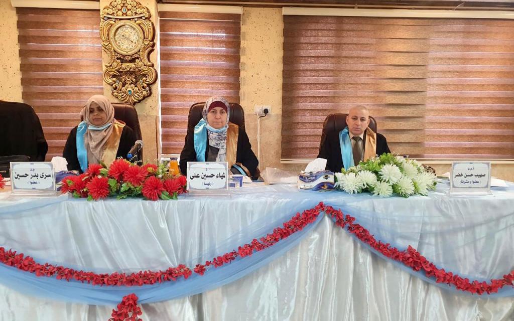 وتراست لجنة المناقشة الأستاذ الدكتورة لمياء حسين علي ..وعضوية كل من المدرس الدكتور سرى بدر حسين مناقشاوالاستاذ المساعد الدكتور صهيب حسين خضر عضوا مشرفا.