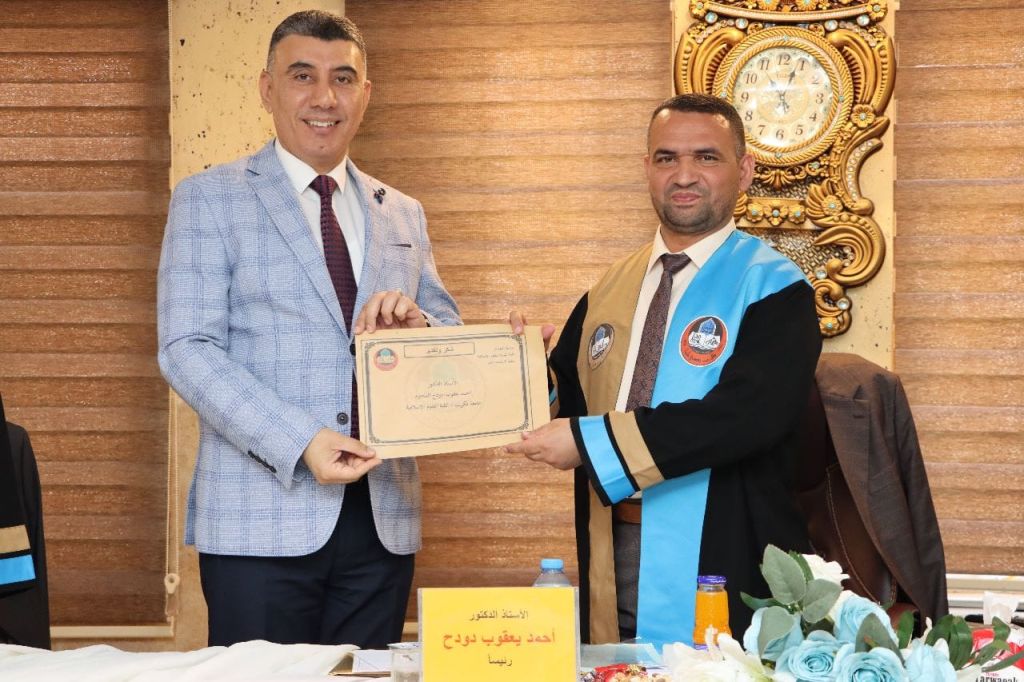 الأستاذ المساعد الدكتور فتحي عباس خلف، وعضوية كل من الأستاذ المساعد الدكتور احمد صالح عبوش، والأستاذ المساعد الدكتور ماريا حسن مغتاظ، وبإشراف وعضوية الأستاذ المساعد الدكتور محمد يونس اسماعيل.